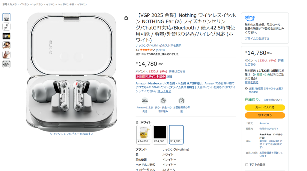 そのすべてを叶えてくれるのが Nothing ear (a) です。